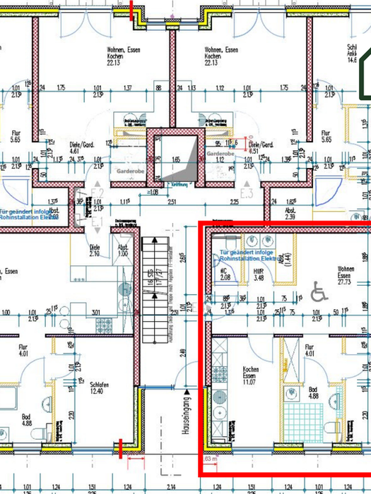 Das 12-Parteien-Wohnhaus wird nach dem hochwertigen KfW-40-QNH-Standard errichtet und im Februar 2025 fertiggestellt. Die Wohnungen sind bequem über ein Treppenhaus oder einen Aufzug zugänglich. Dank der 3-fach-verglasten Fenster, der effektiven Wärmedämmung der Fassade und der zentralen Luft-Wärmepumpenheizung werden die Nebenkosten bewusst niedrig gehalten.
